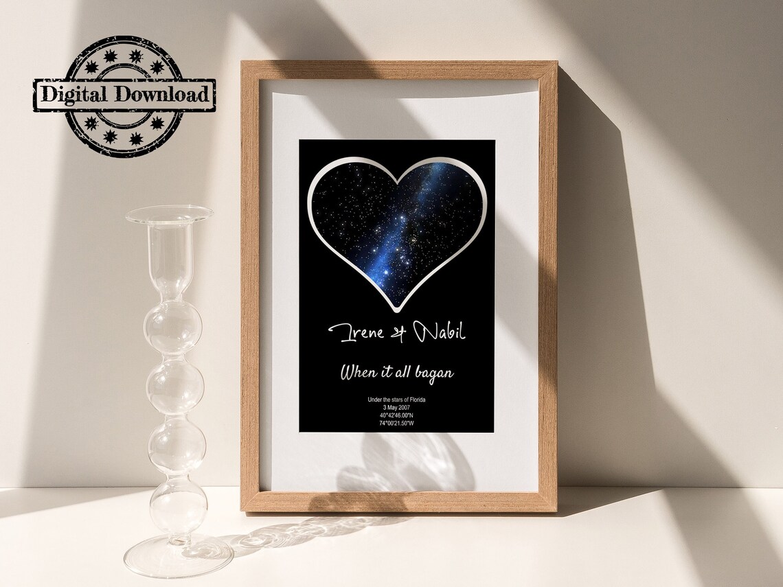 Personalized Star Map by Date Print Custom Star Map Night Light When the Night We Met Stars for Couples Anniversary One Year Dating Gift