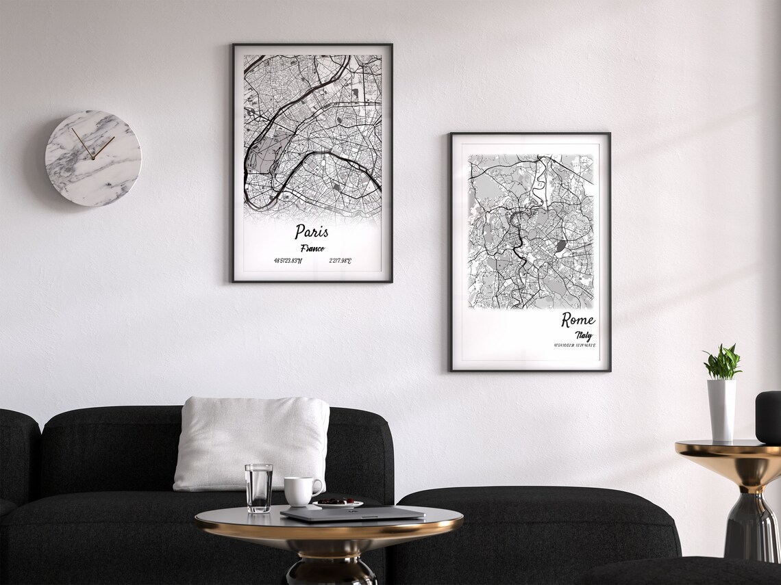 • Minimalist Custom City Map Print, One Year Dating Gift, Personalized Map Wall Decor, Custom Map Gift, Anniversary Gift for Him or Her