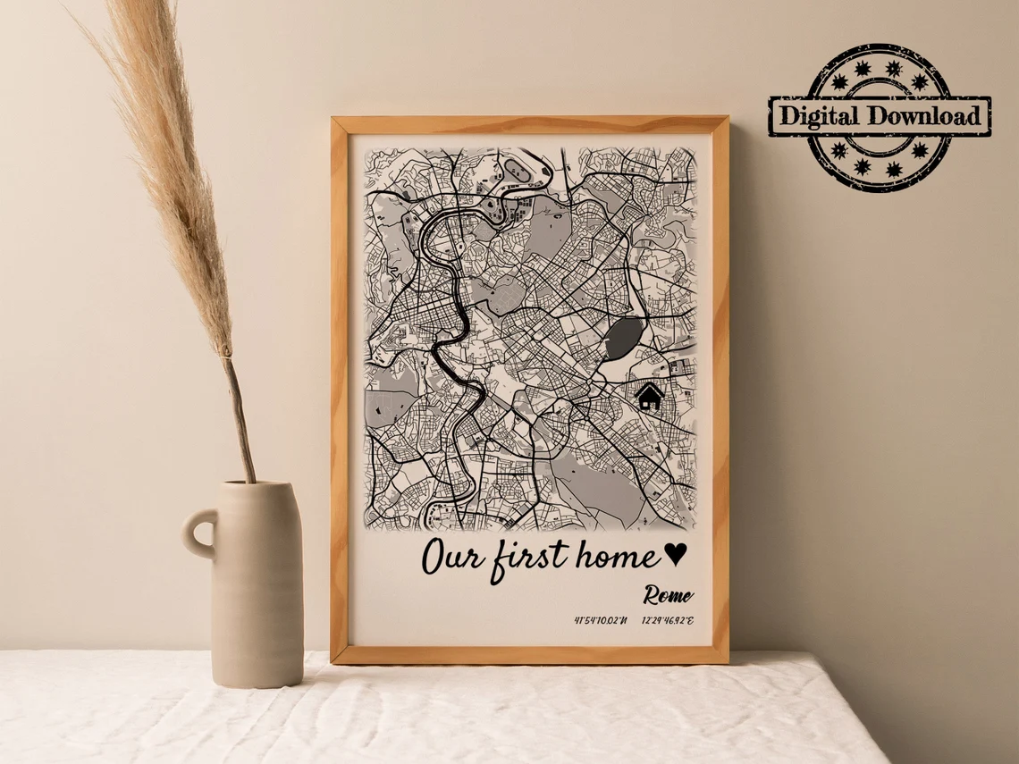 • Our First Home Map, Custom City Map Print , Where We First Met Map, Hometown Map Print, Any City Map Print, Gift for Her, Wife, for Husband