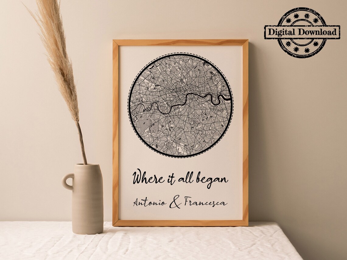 • Where We Met Map, Custom City Map, Where It All Began Map, One Year Dating Gift, Anniversary Gift For Husband, Printable Wall Art For Her